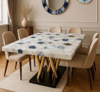 Luxury Agate Dining Table with Natural Gemstone Top