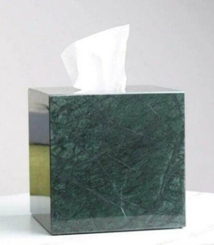Add a touch of elegance to your space with this exquisite Green Marble Tissue Box, crafted from premium natural stone. Featuring rich green hues and unique veining, this sophisticated tissue holder seamlessly blends functionality with luxury, making it a perfect addition to bathrooms, living rooms, offices, or vanity areas.
