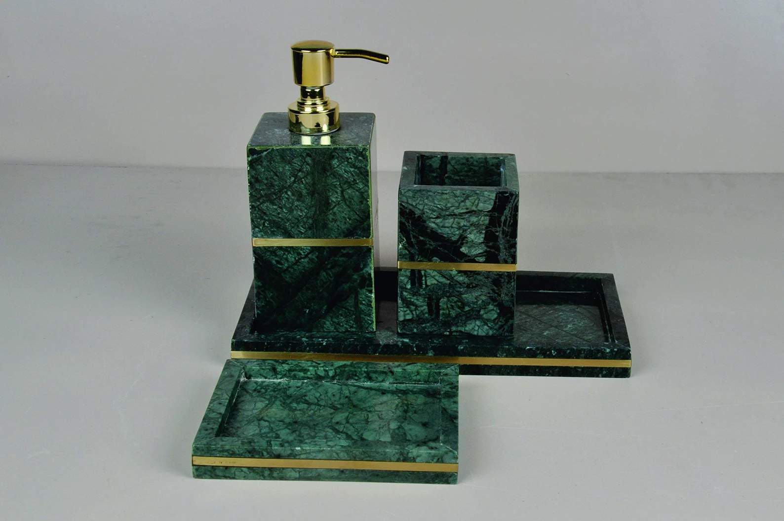 Enhance your bathroom décor with this thoughtfully designed Green Marble Bathroom Accessories Set (4-Piece). Designed for both functionality and aesthetics, this set helps keep bathroom essentials neatly organized on countertops, vanities, or wash areas. Its durable stone construction makes it suitable for daily use, while the polished surface allows for easy maintenance.